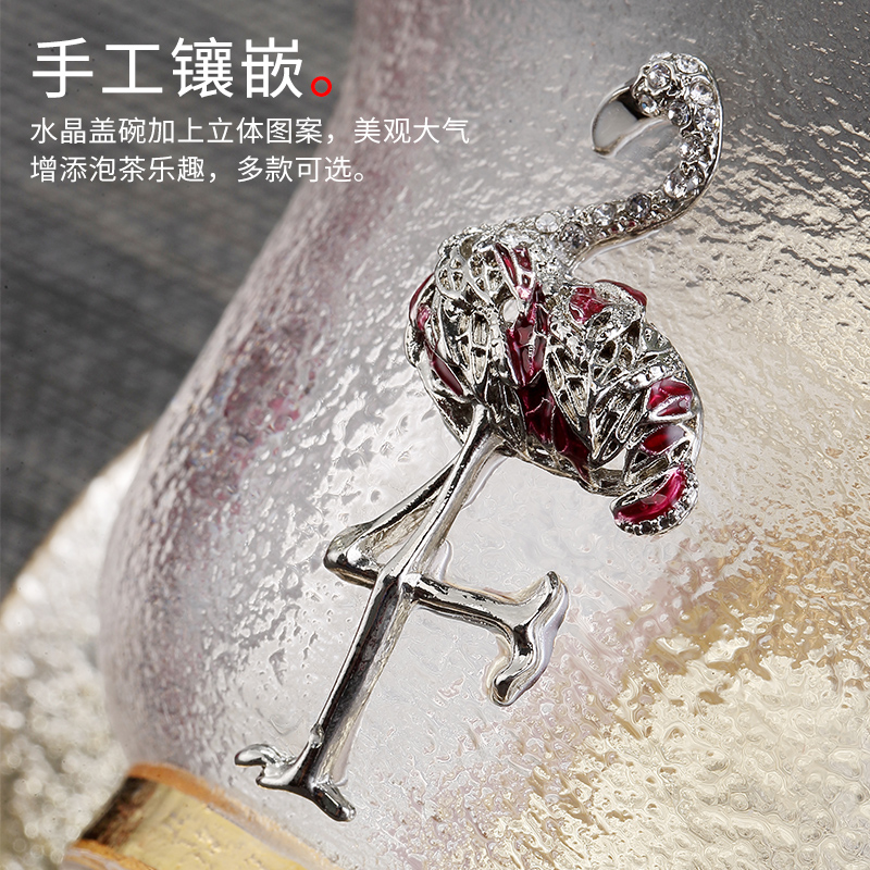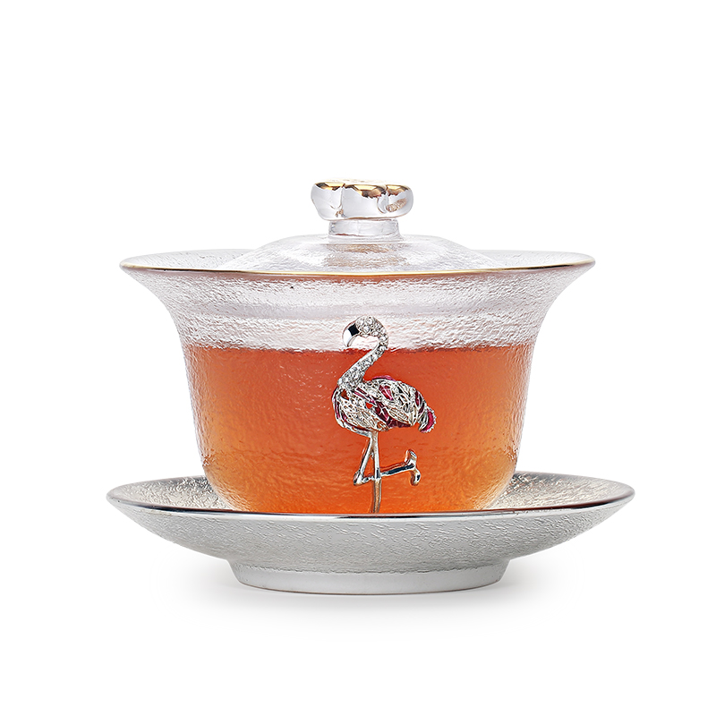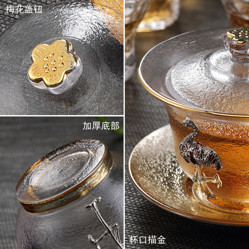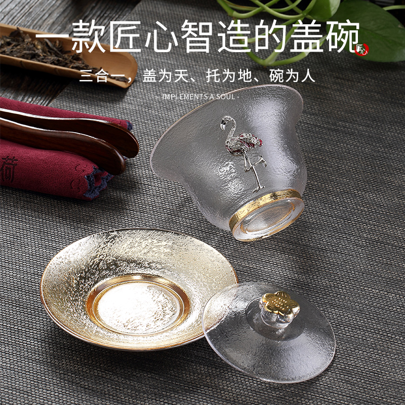 Crystal cover bowl inlaid with silver glass gilt cover bowl teacup heat-resistant thickened Sancai tea bowl teacup kung fu tea tea set