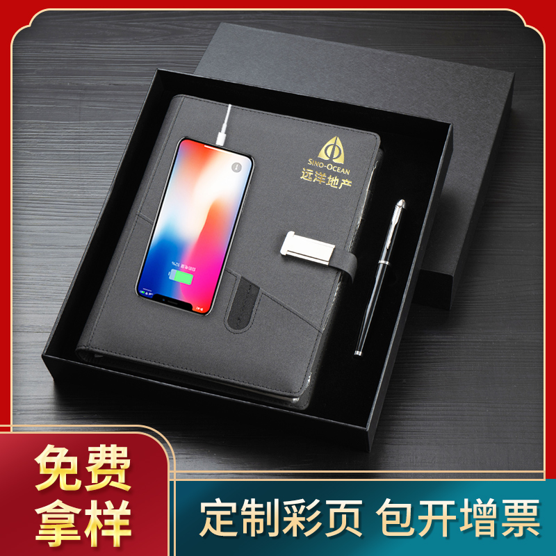 Multi-function charging notepad U disk power bank notebook sub business A5 book wireless charging treasure office notebook high-grade meeting minutes book gift box set customizable printable LOGO