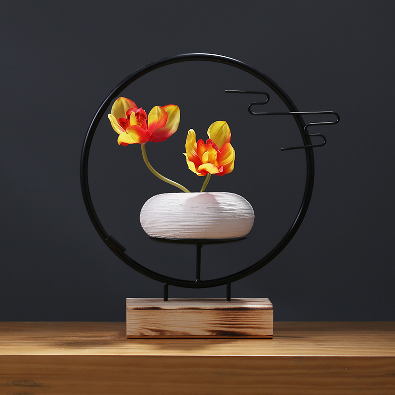 Wrought iron flower stand Ceramic vase simulation flower