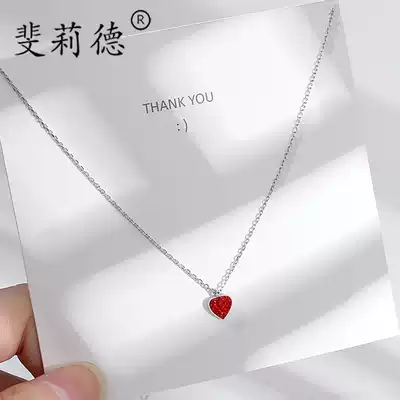 Little red heart necklace female sterling silver choker rose gold simple Net red tide fashion temperament Joker jewelry send girlfriend