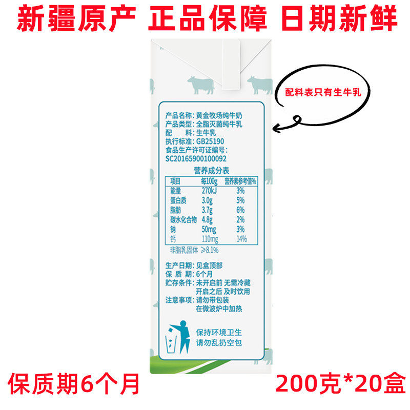 New date Xinjiang Garden Milk 200g*20 boxes of gold pasture adult pregnant woman breakfast pure milk