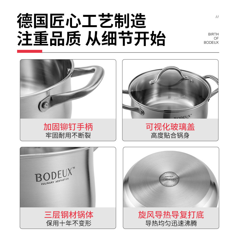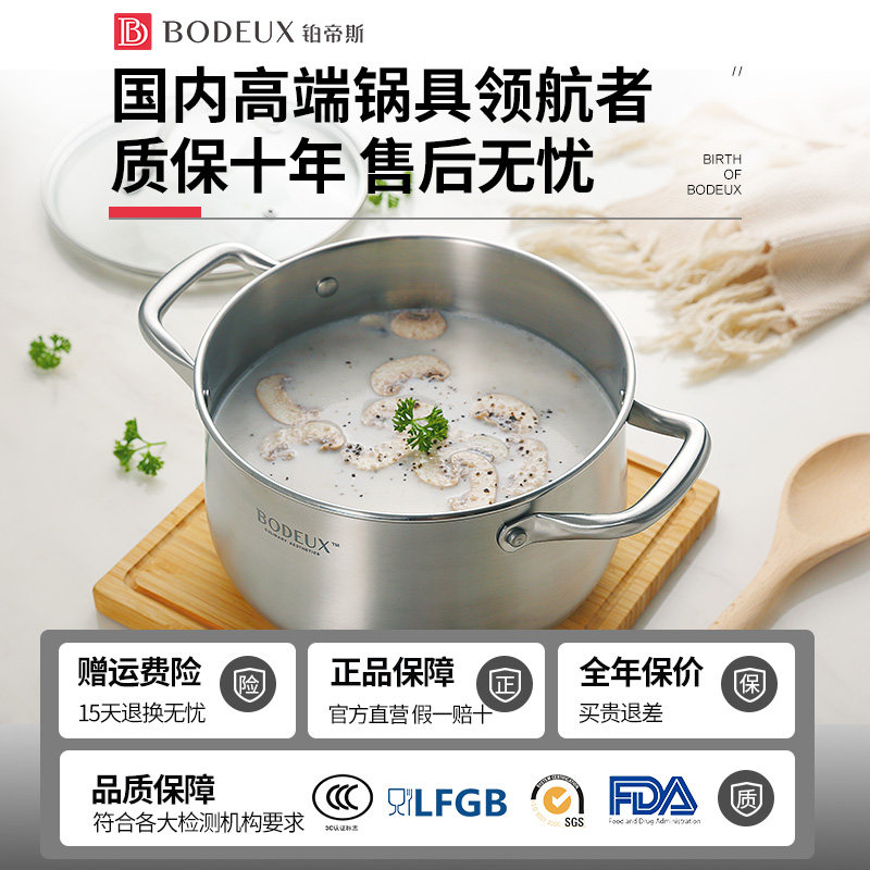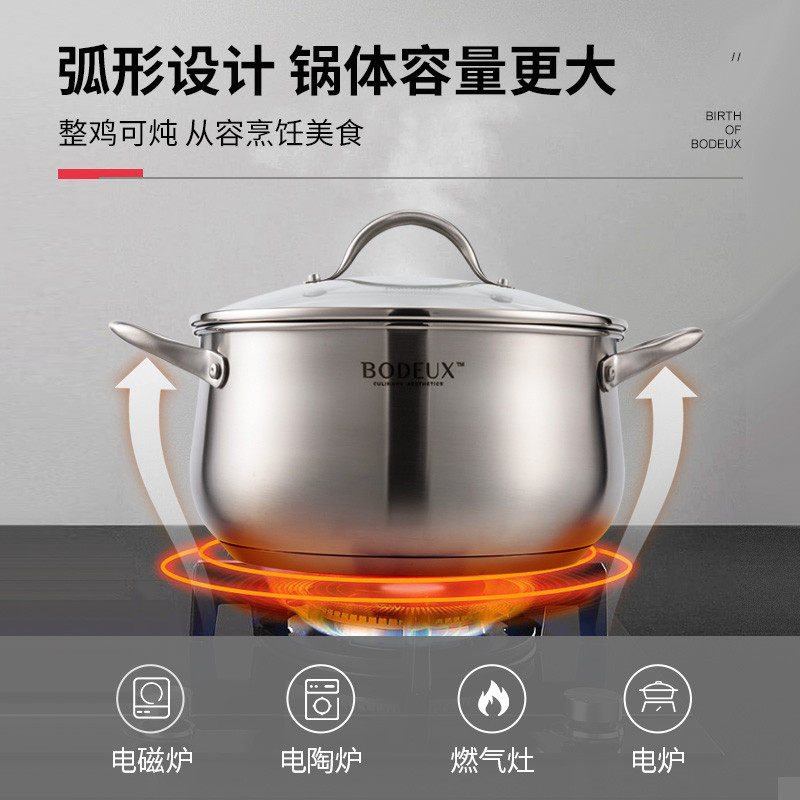 Platinum Emperors Stockpot 304 Stainless Steel Thickened Domestic Cooking Pot Saucepan Cooking Porridge Large Capacity Gas Induction Cookers Universal