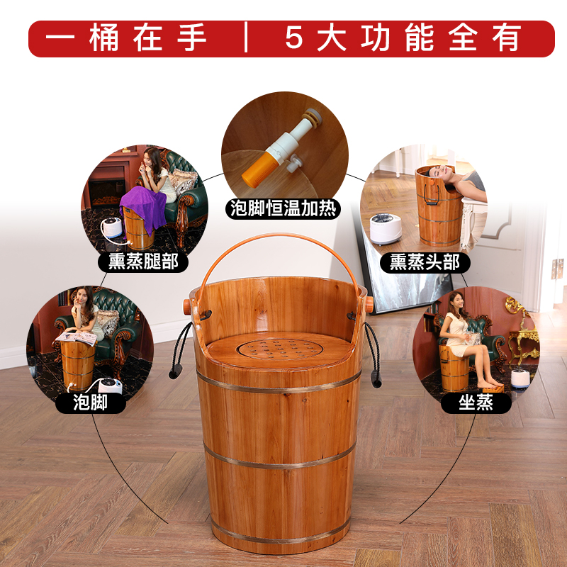 Foot soaking wooden barrel over calf household wooden fumigation bucket full body foot bath high deep barrel steam heating constant temperature foot wash basin