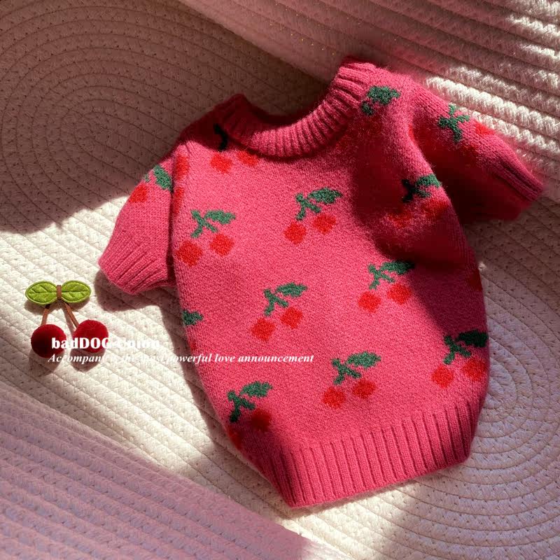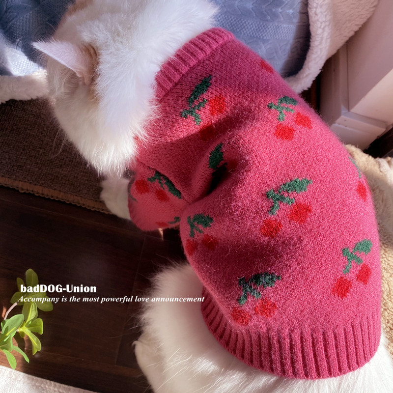 Pet cute autumn and winter warm sweater Teddy Bichon Schnauzer Shiba Inu dog cat new cherry sweater