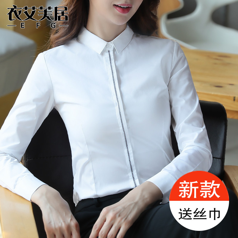 Career Shirt Woman Long Sleeve Workwear 100 Lap Tooling Spring Autumn New Cotton Positive Dress Fashion High-end Temperament White Lining Clothing