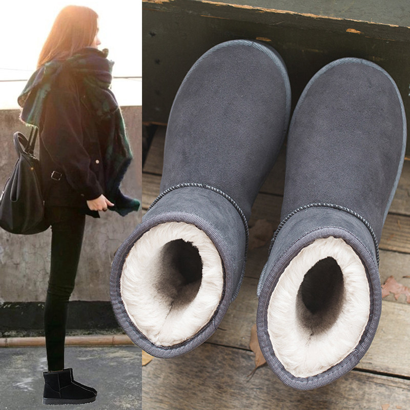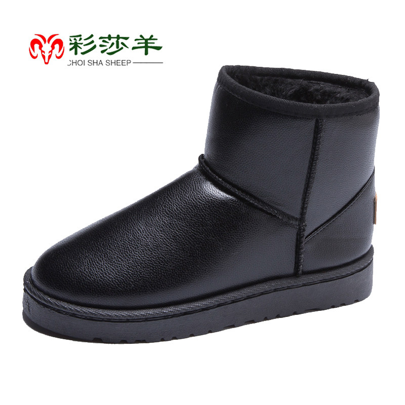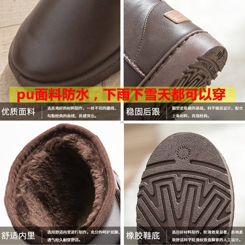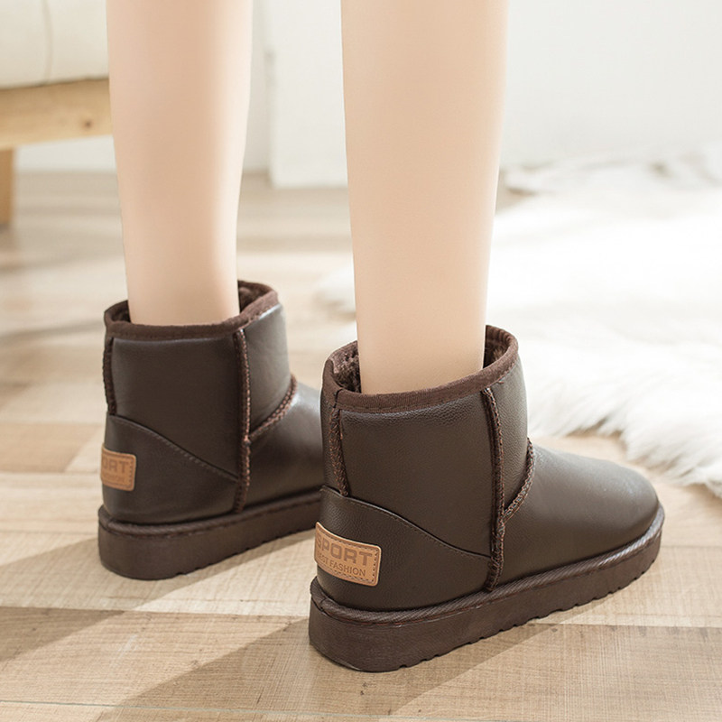 Leather snow boots women waterproof velvet thickened warm cotton shoes winter non-slip boots