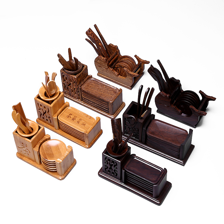 Kung Fu tea accessories Tea ceremony Six Junzi Complete set of ebony solid wood tea clip Bamboo tweezers Tea cup tea clip