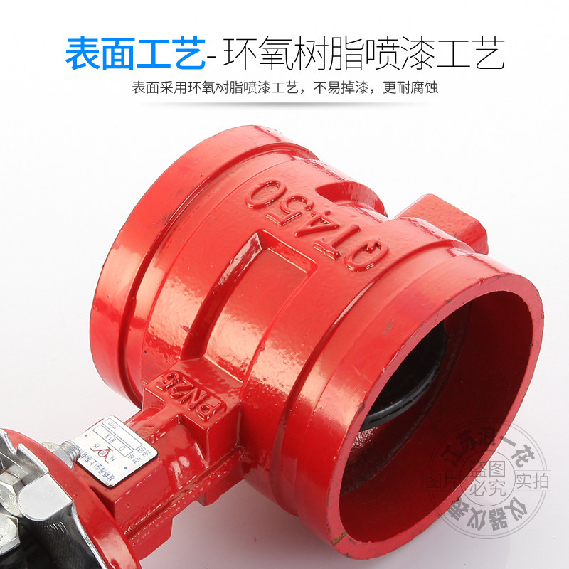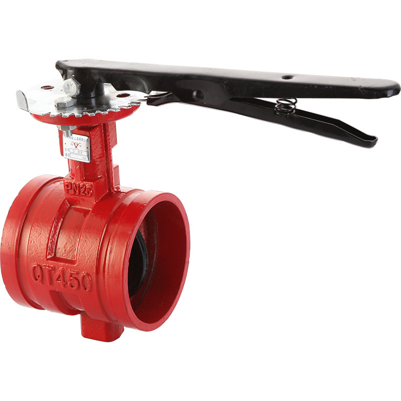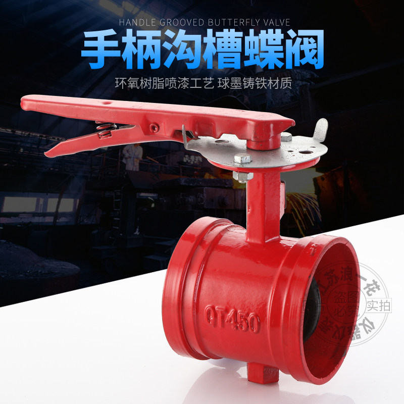 Direct sales D81X baking lacquered ductile iron thickened ZSDF hanging glue firefighting manual handle style hoop groove butterfly valve door