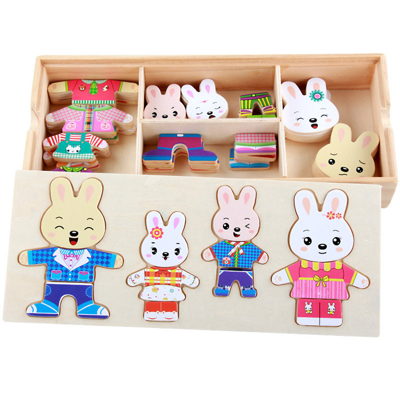 Young Child Bear Little Bear Little Rabbit Change Clothes Puzzle Boy 2 Girl 3 Year Old 4 Baby 5 Puzzle 6 Solid Wooden Toy 7