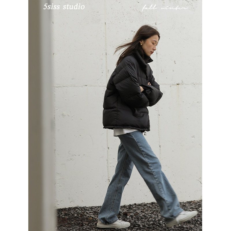 5siss 2022 Winter new Korean version light and thin style Bread Cotton Clothes White Duck Suede Detachable Scarves short version down clothes
