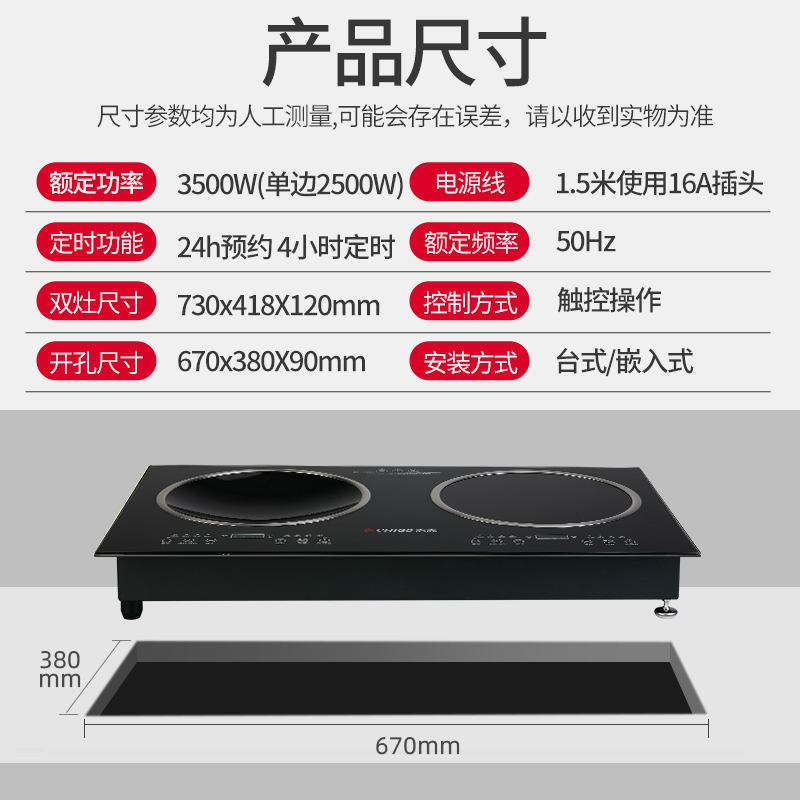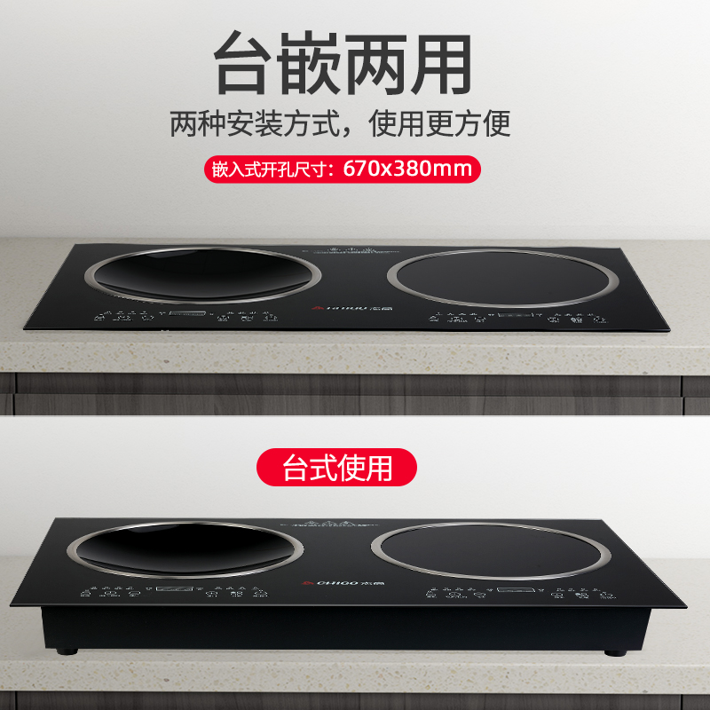 Zhigao Embedded induction stove Double-mouth gas stove Domestic concave double head in-line black crystal furnace double furnace electric hearth 2325