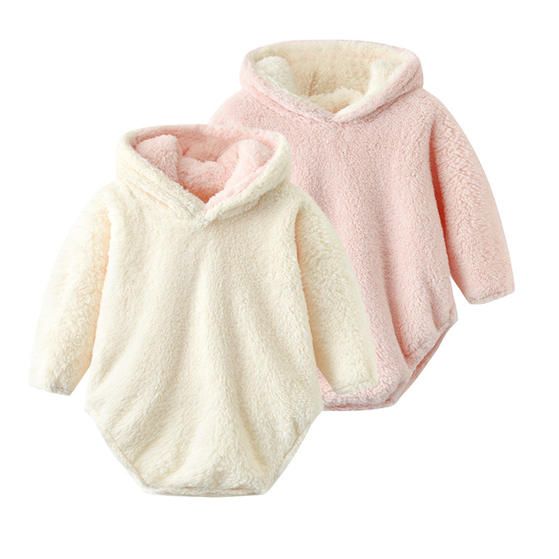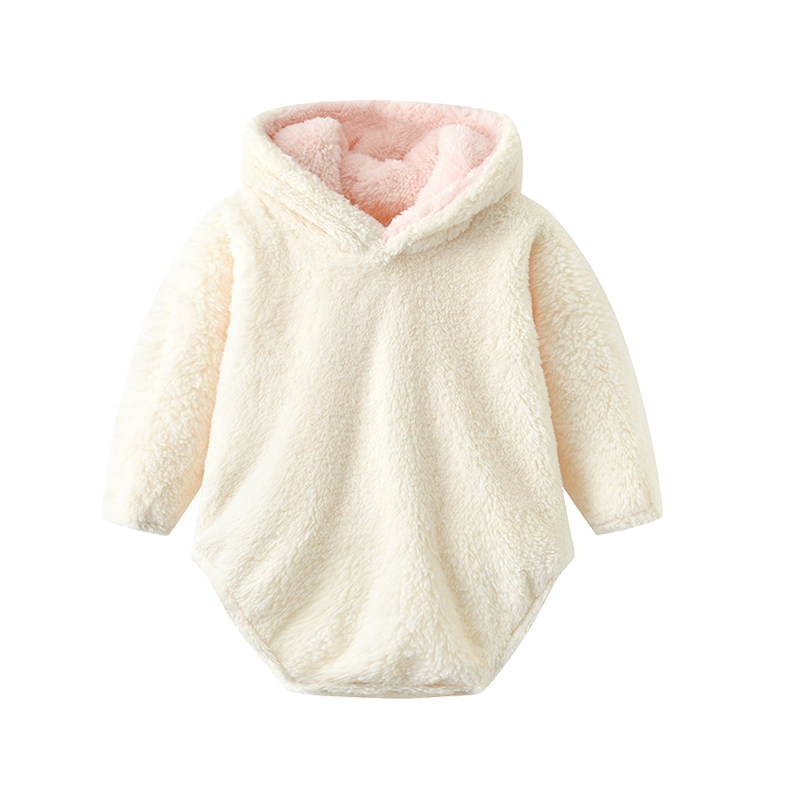 ins Baby winter coat Male and female baby flannel bag fart coat Newborn soft adorable rabbit ear one-piece