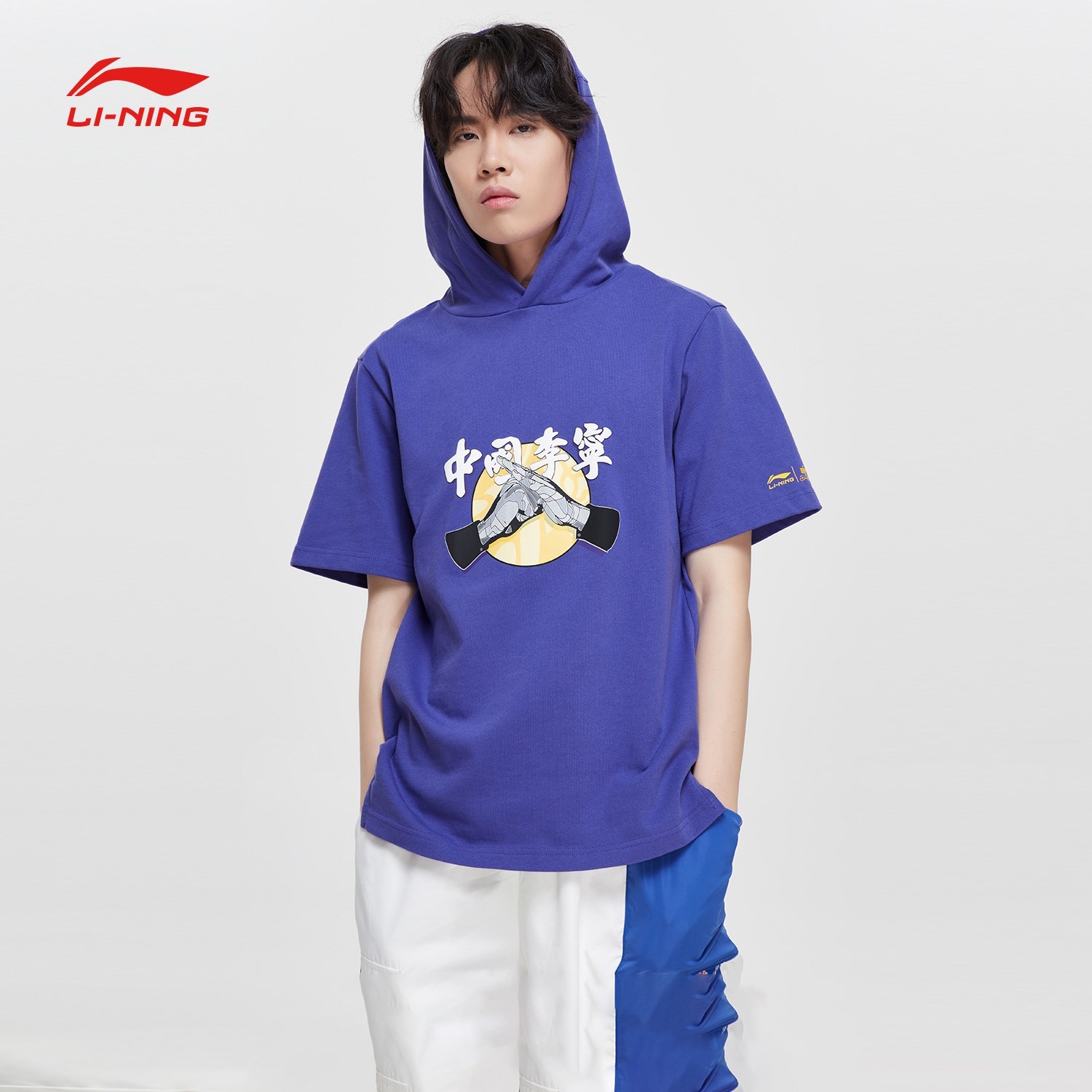 China li ning limited edition Paris fashion show men's short-sleeved hoodie sport fashion T-shirt hoodie AWDP555