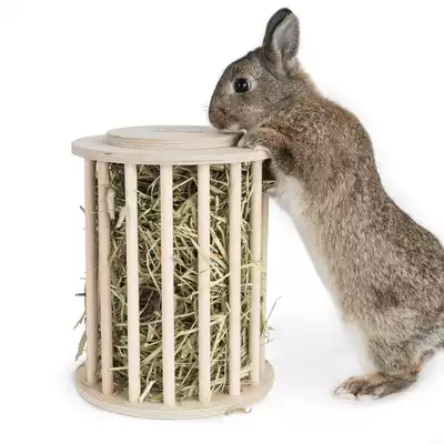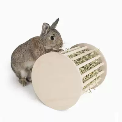 Niteangel Aite pet rabbit grass rack Dutch pig round wooden anti-scratching grass cage with internal and external grass feeder