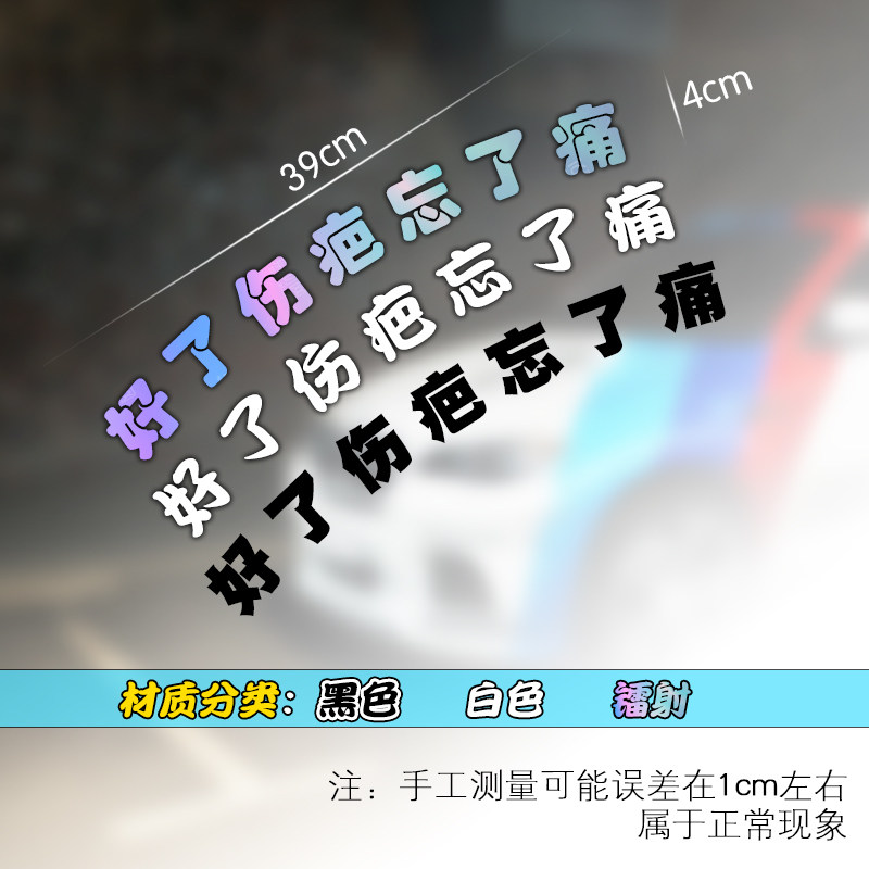 Car wheel eyebrow Scratch Sticker personality creative fun car sticker custom text good scar forget pain