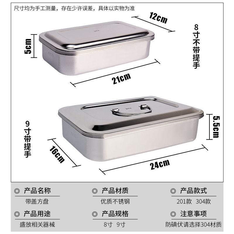 Disinfection box square plate stainless steel curved plate alcohol cylinder tank tray waist plate disinfection plate instrument tweezers bucket cotton cylinder
