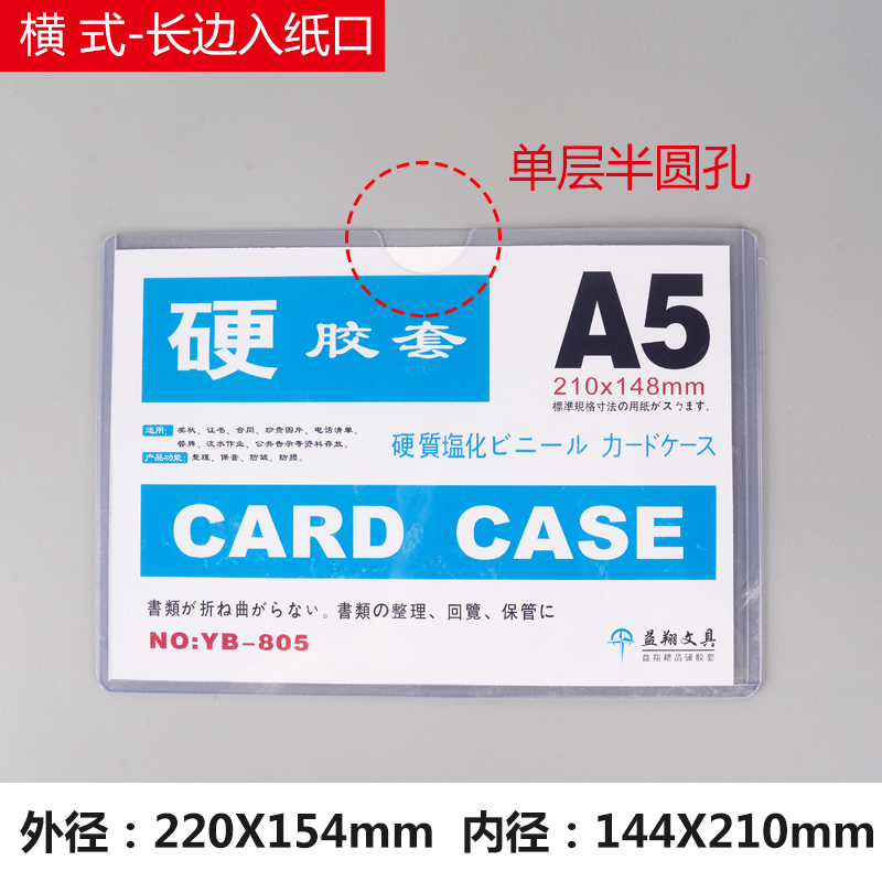 Transparent hard gum cover A4A5a3 credential sleeve semi-circle clamping sleeve file bag protective sleeve