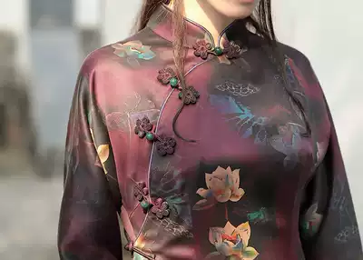 Xi Hanyue {Zi He} silk fragrant cloud yarn handmade slim cheongsam dress female long version flower autumn elegant temperament