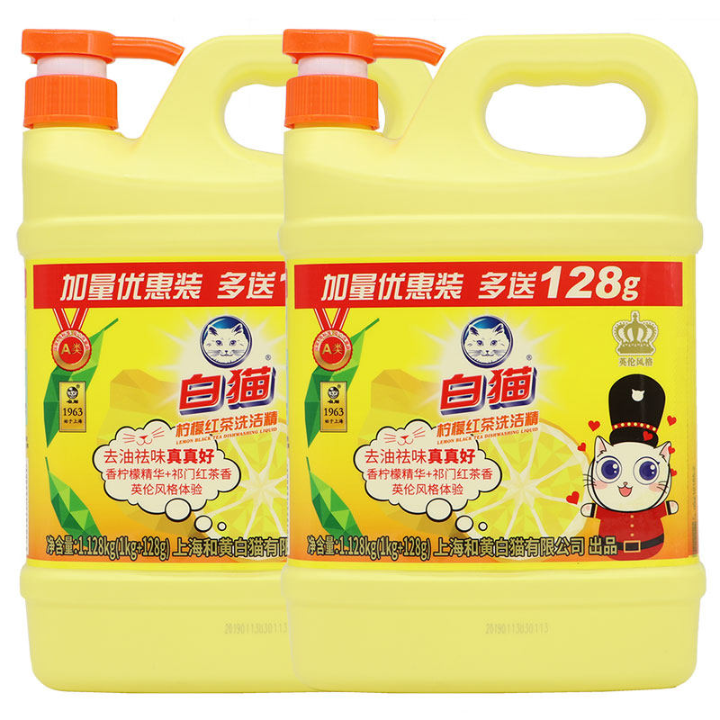 White Cat Wash Essence 1128 * 2 bottles Home Bottling Large Barrel Bottled Kitchen Dishwashing Liquid Cutlery Ultra Effective Detergent