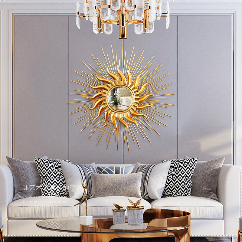 Living room wall decoration mirror wrought iron wall hanging round sofa background wall porch mirror light luxury metal wall decoration pendant