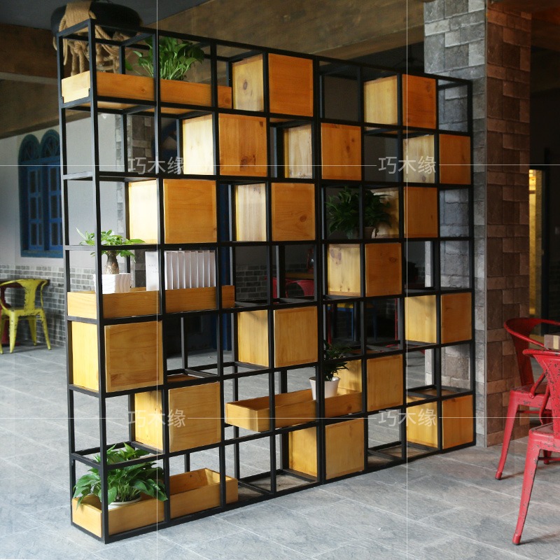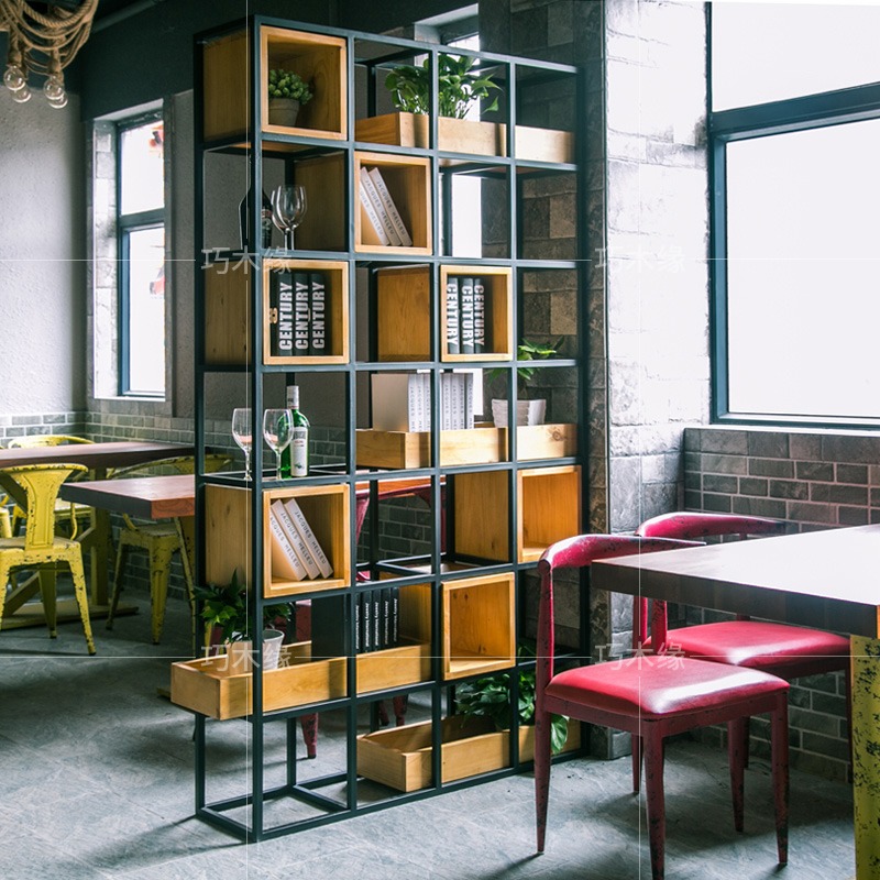 loft American iron art storage shelve industrial wind floor partition show solid wood office display containing layer shelf