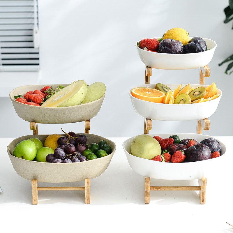 Ceramic Fruit Disk Nordic Style Three-storey Fruit Disk Modern Living Room Simply European Luxury Double-deck Fruit Disk