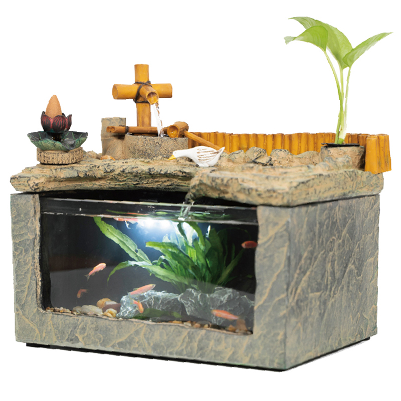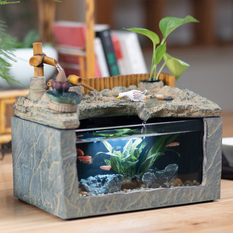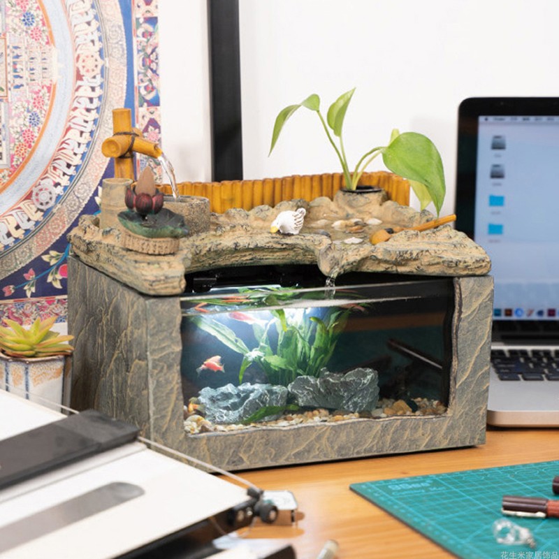 Desk fish tank landscaping package new Chinese decoration glass tank living room small decorative aquarium mini home