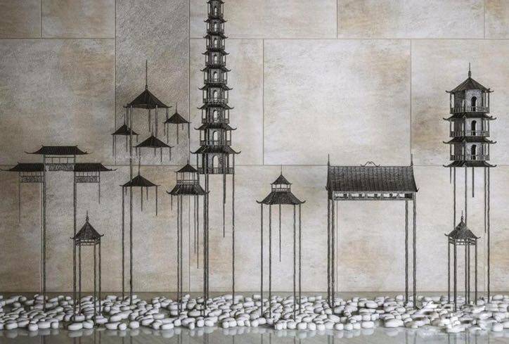Chinese Iron Art Cool Pavilion Dining Room Dining Room Dining Room Dining Hall Wall Decoration Hotel Aisle Door Hall Water View Metal Pendulum