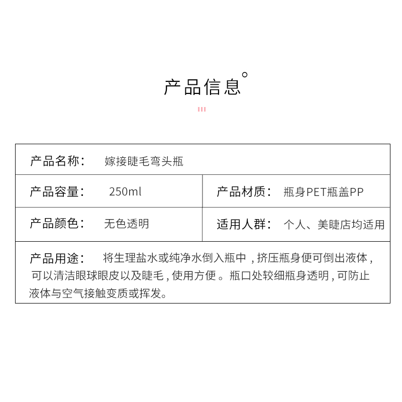 Grafting eyelash elbow bottle washing bottle distilled water to clean eyes squeezing blow bottle 250ml with scale