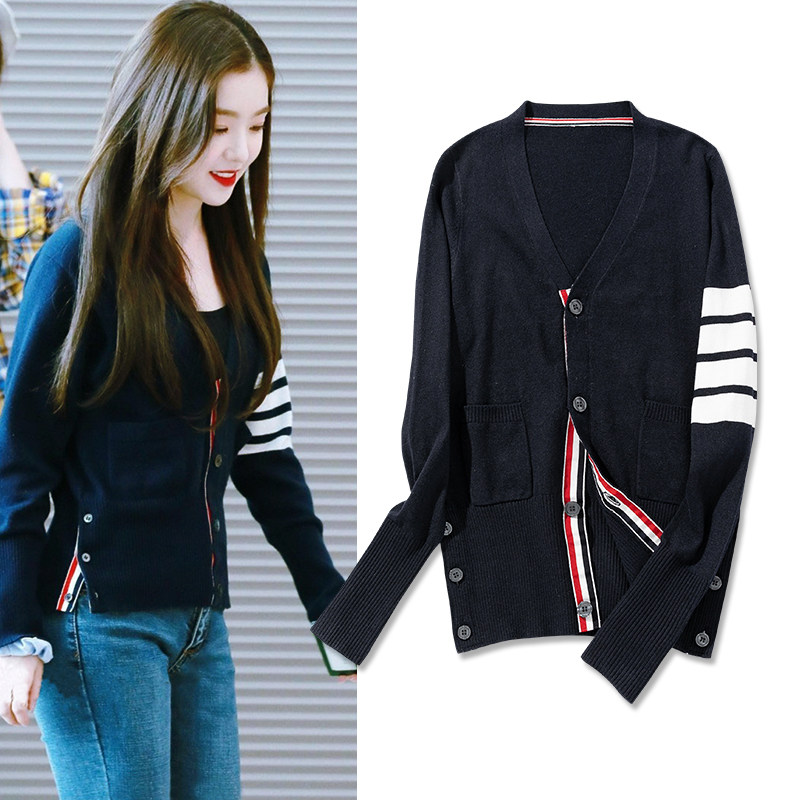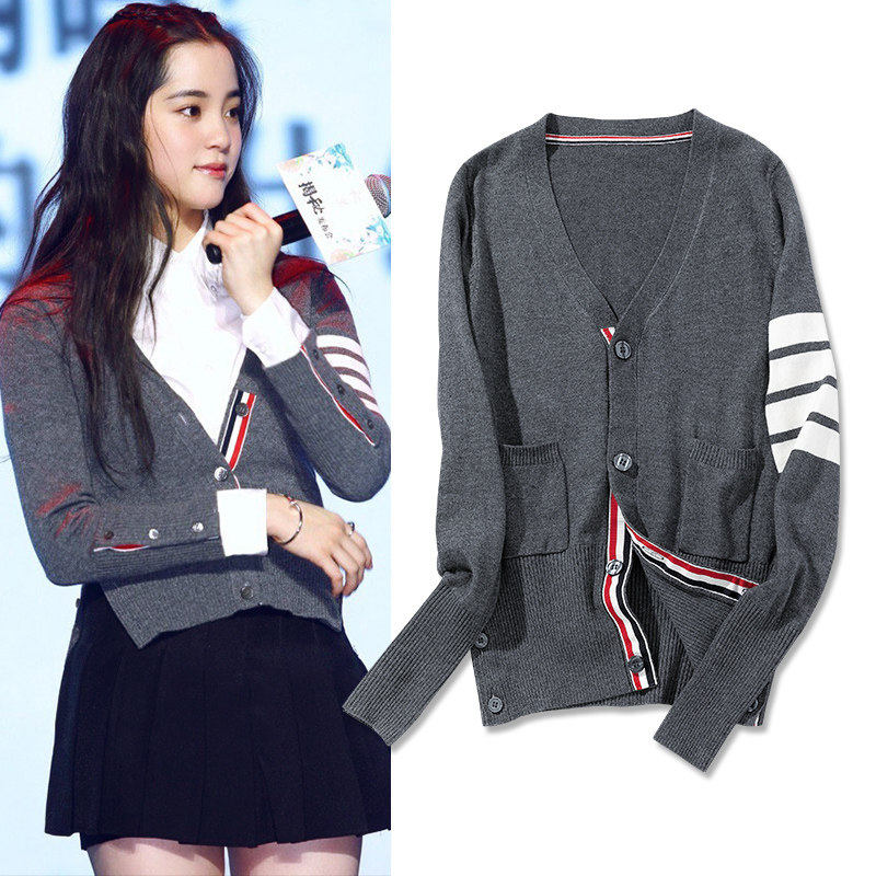 2021 spring new tb knit cardiovert female Korean version Academy wind stars the same V-collar wool sweater short jacket