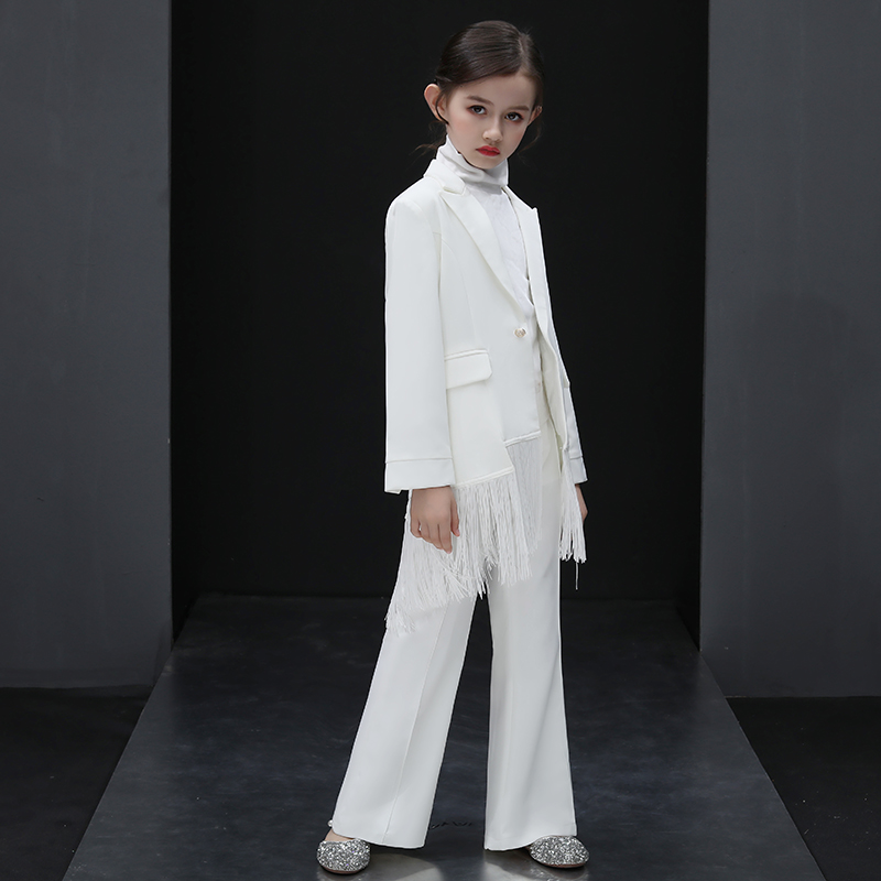 Girl Gown Dress Children Model Walking Show Wave Clothes Little Girl Fashion Suit Suit Hosting West Suit Foreign Evening Dress