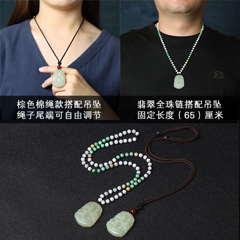 (with Emerald All-bead chain, please note the zodiac) Palm rope and Tian Yu (pig rabbit) Triple pendant Brown rope and Tian Yu (tiger horse) Triple pendant Brown rope and Tiger Rope and Tian Yu (monkey rat dragon)
