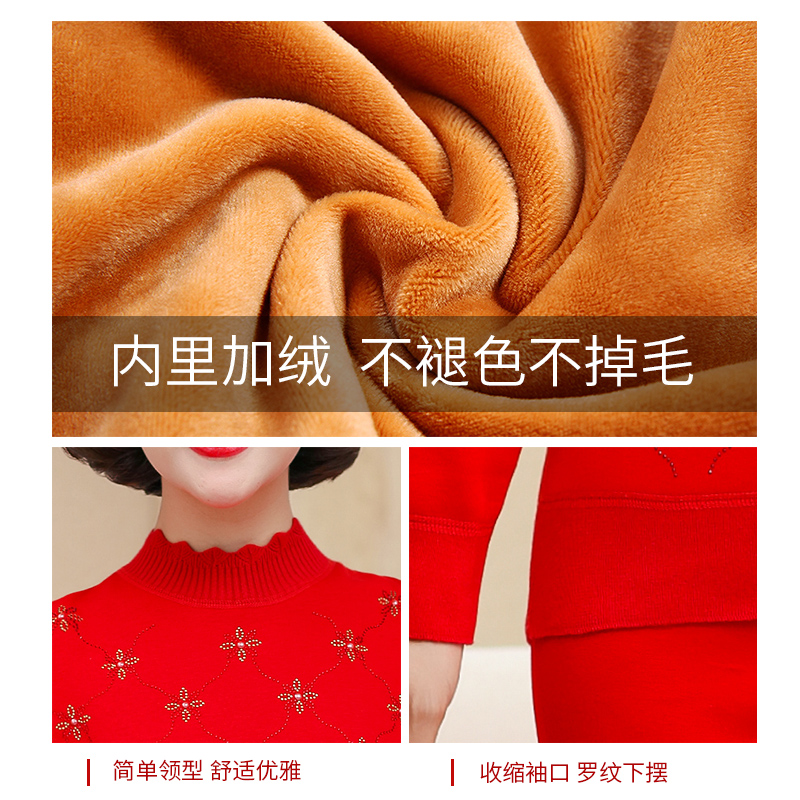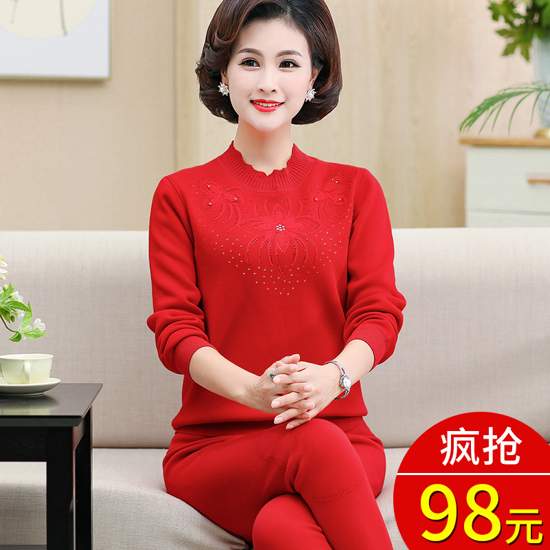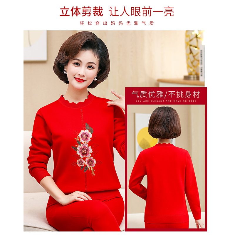 Middle-aged and elderly heating clothes women's plus velvet thickening mother suits old people old people's big red natal year is the year of the ox