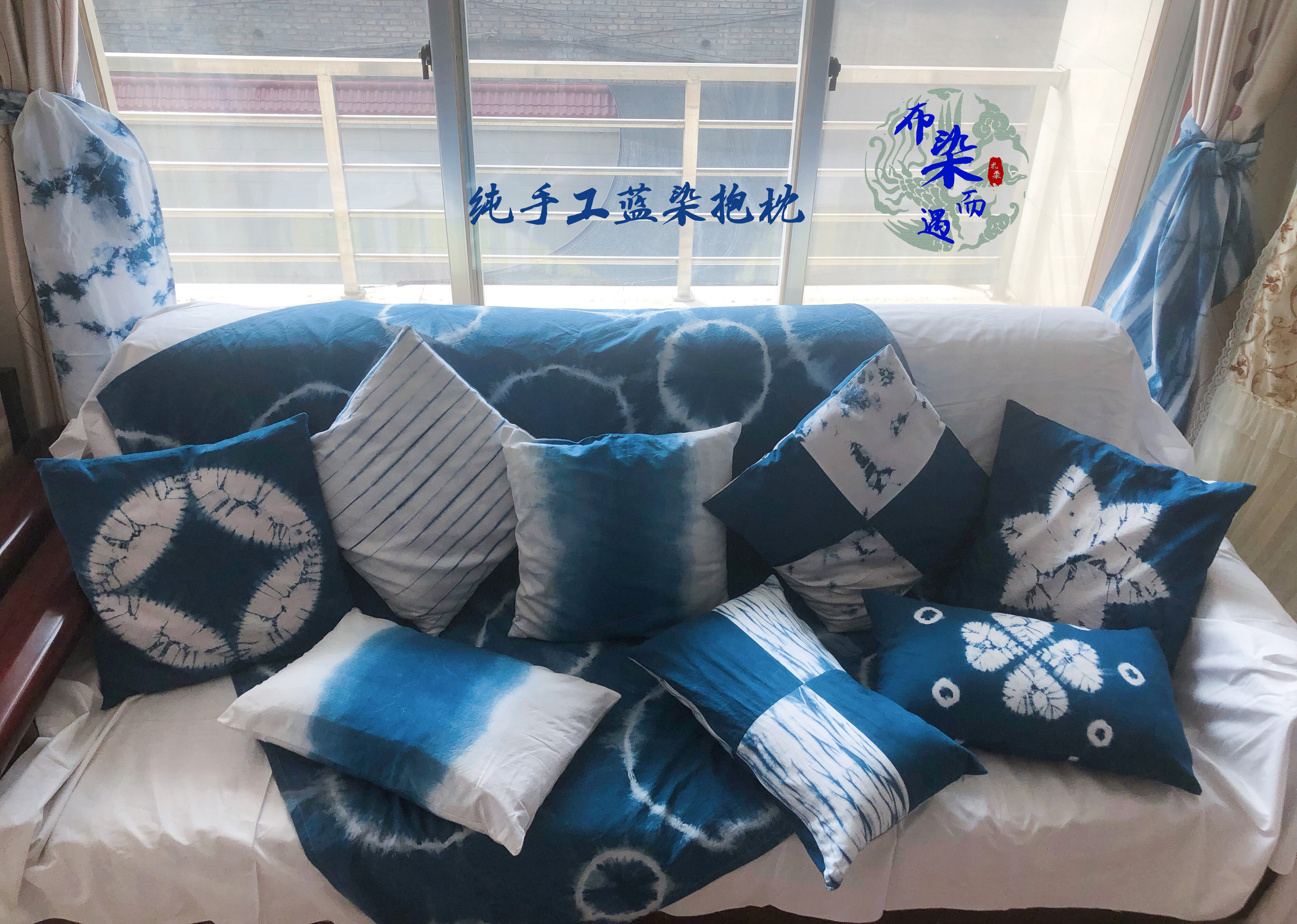 Original design Pure handmade blue dye Dyed Thick Pure Cotton Hug Pillow Cover Pillowcase Pillow Case pillow pillow pillow pillowcase Diy Graphic Home