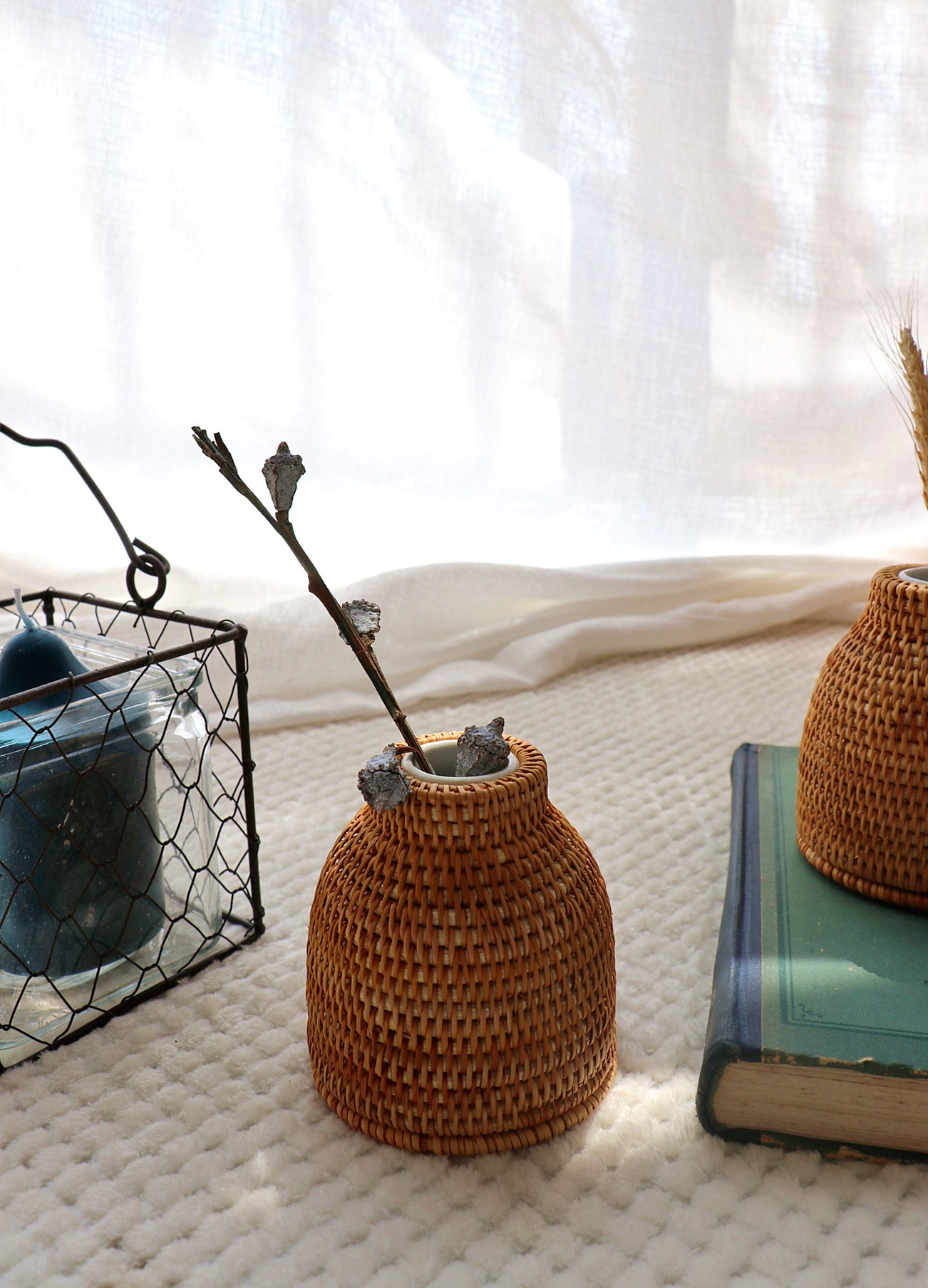 Small rattan vase (with porcelain vase) retro dry vase (without porcelain vase)