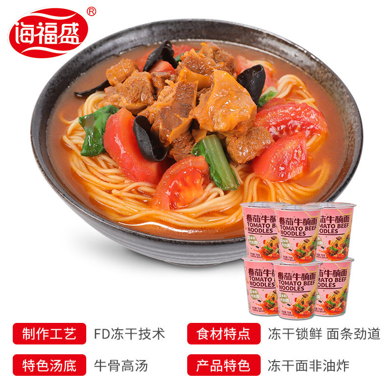 Sea Fosein Tomato Beef Noodle with no spicy 6 barrels of freeze-dried pasta Non-fried convenient Bubbling Noodle Nutritious décor is free to cook night-night