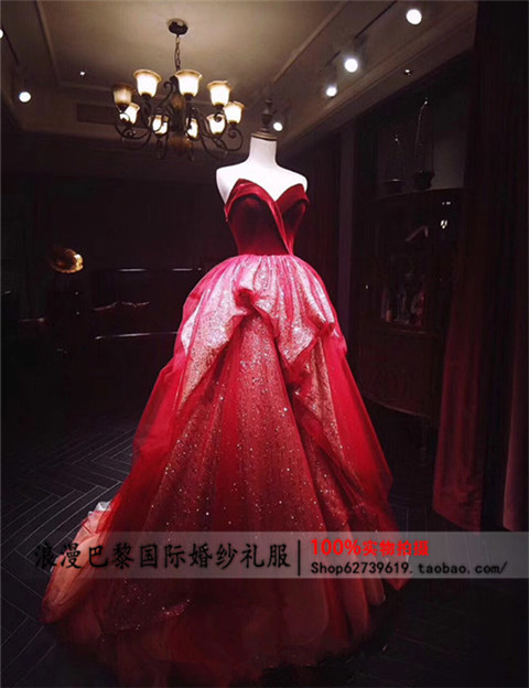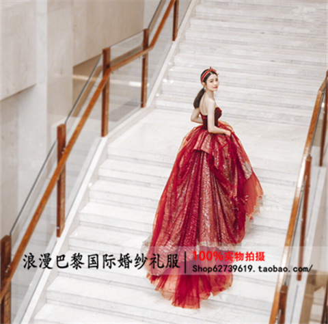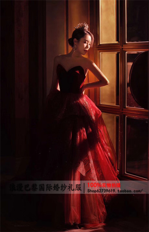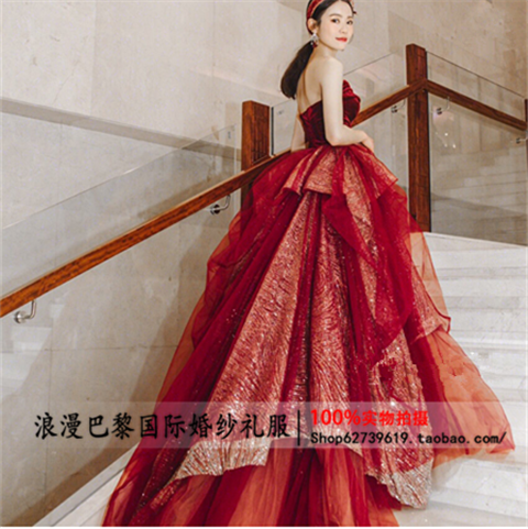 Red Wedding Dress Gown 2022 Noble Smear Bride Wedding Night Gown Wedding dresses Guest Dress stage fluffy dress Small trailing