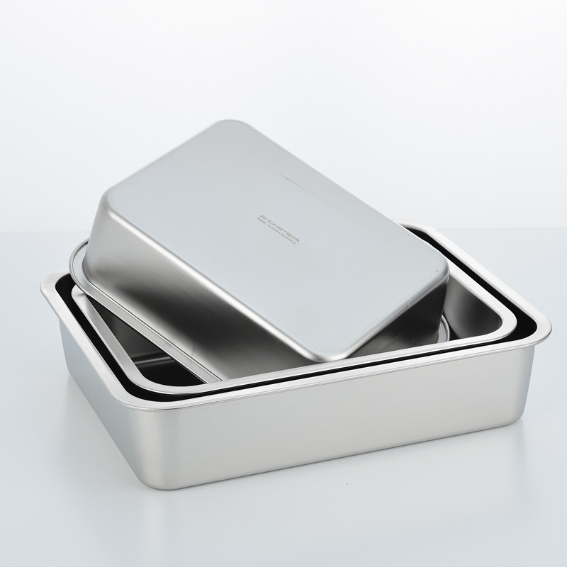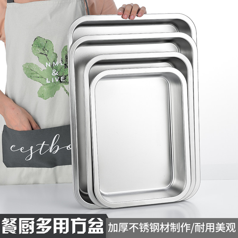Stainless Steel Square Basin Rectangular Dining Basin Flat Bottom Fried Basin Brine basin with lid Vegetable Case Deepening the large lettule pelvic basin