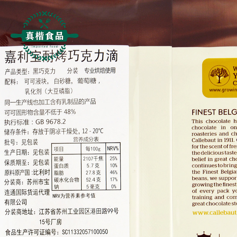 Galibao roasted chocolate droplets 500g high temperature inlet chocolate beans 48 % West point cookie raw material