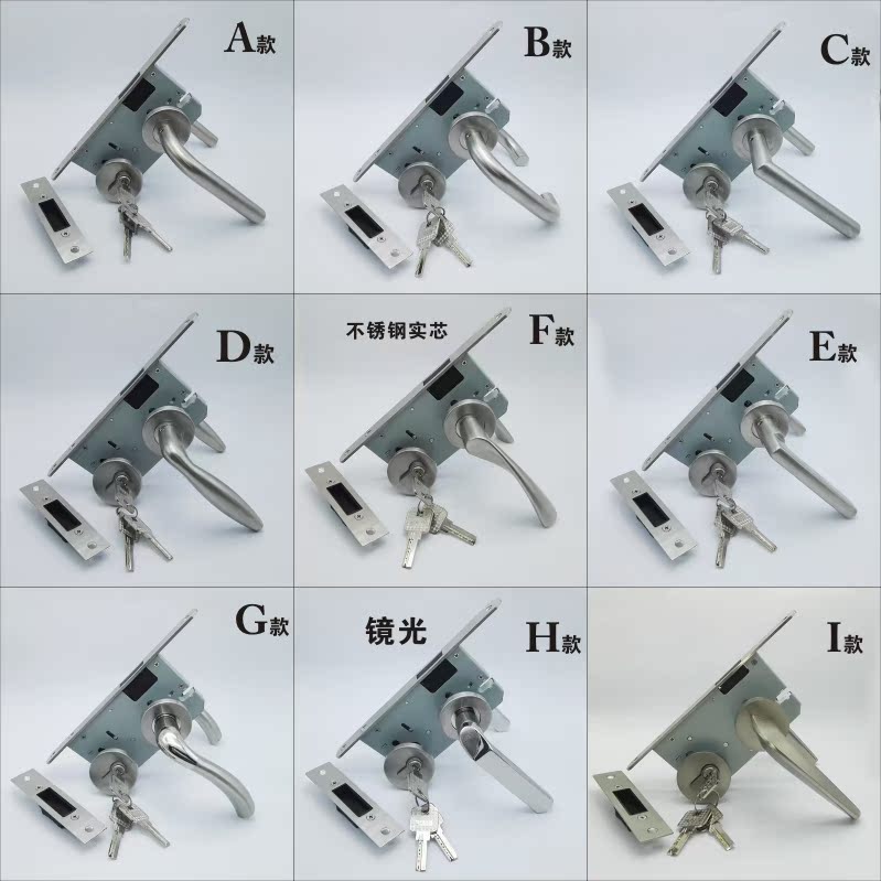 A single bend stainless steel magnetic silence lock B double bend stainless steel magnetic suction lock C straight angle stainless steel magnetic suction lock D stainless steel magnetic silence audio