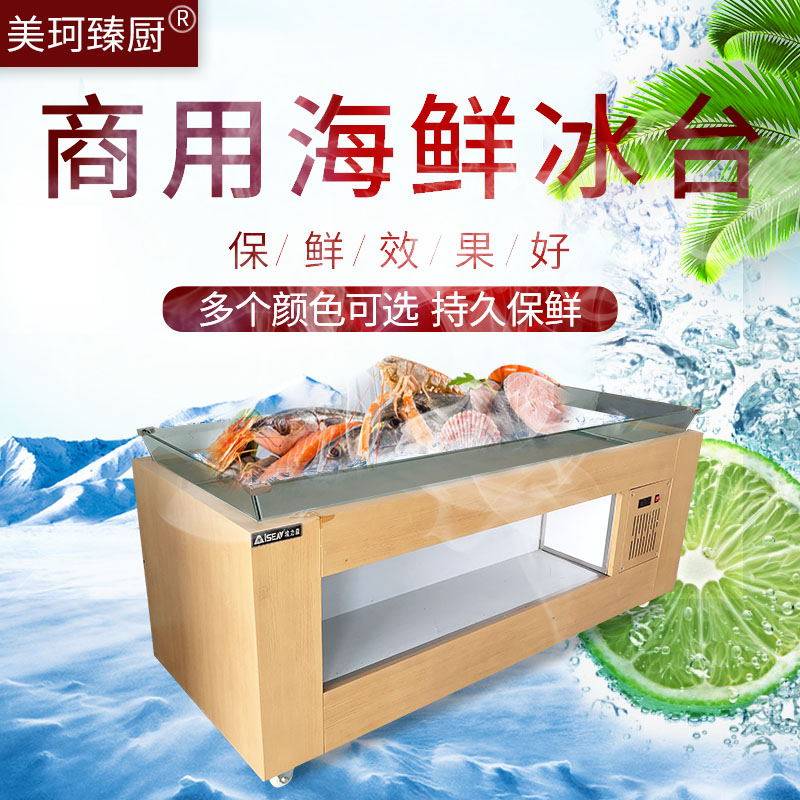 Seafood ice table Commercial stainless steel freezing table supermarket restaurant frozen display cabinet horizontal ordering cabinet fresh-keeping cabinet