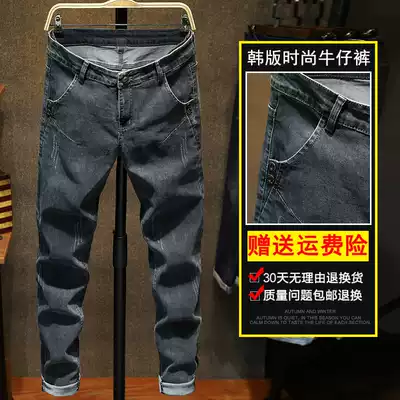Winter plus velvet padded denim long pants men 2021 new autumn and winter casual trend Joker straight pants