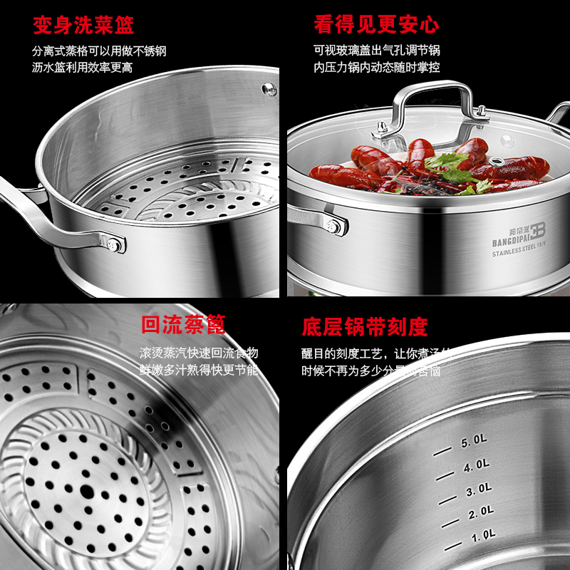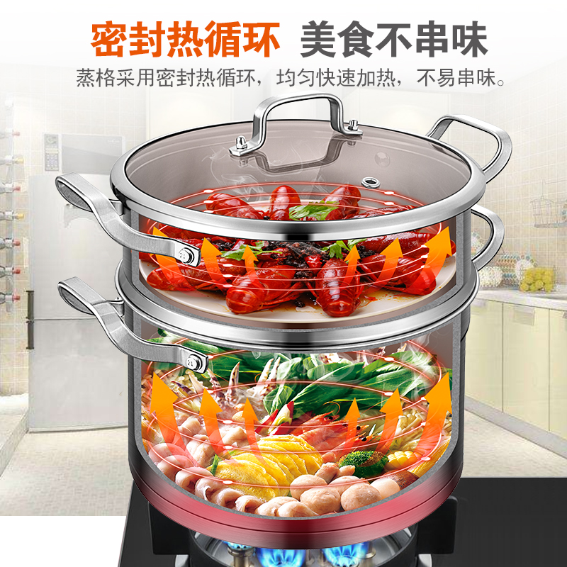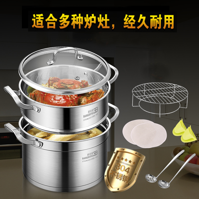 Steamer home 304 stainless steel steamer Germany large capacity three layer thickened 2 layer steamer induction cooker gas applicable