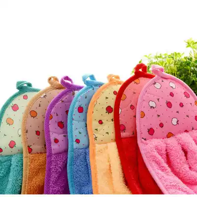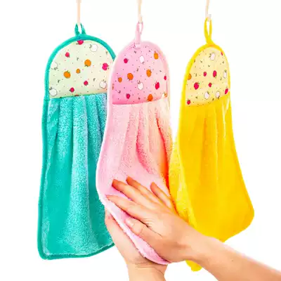 Home coral velvet hand towel cute hanging kitchen dressing room living room with lanyard absorbent towel rag towel