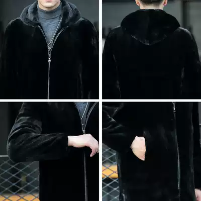 Winter Haining Leather City Men's Zip Hooded Medium Long Edition Mink Coat Whole Mink Fur Fur Fur Coat