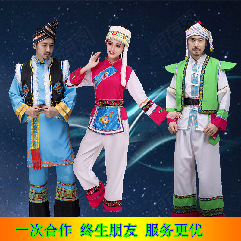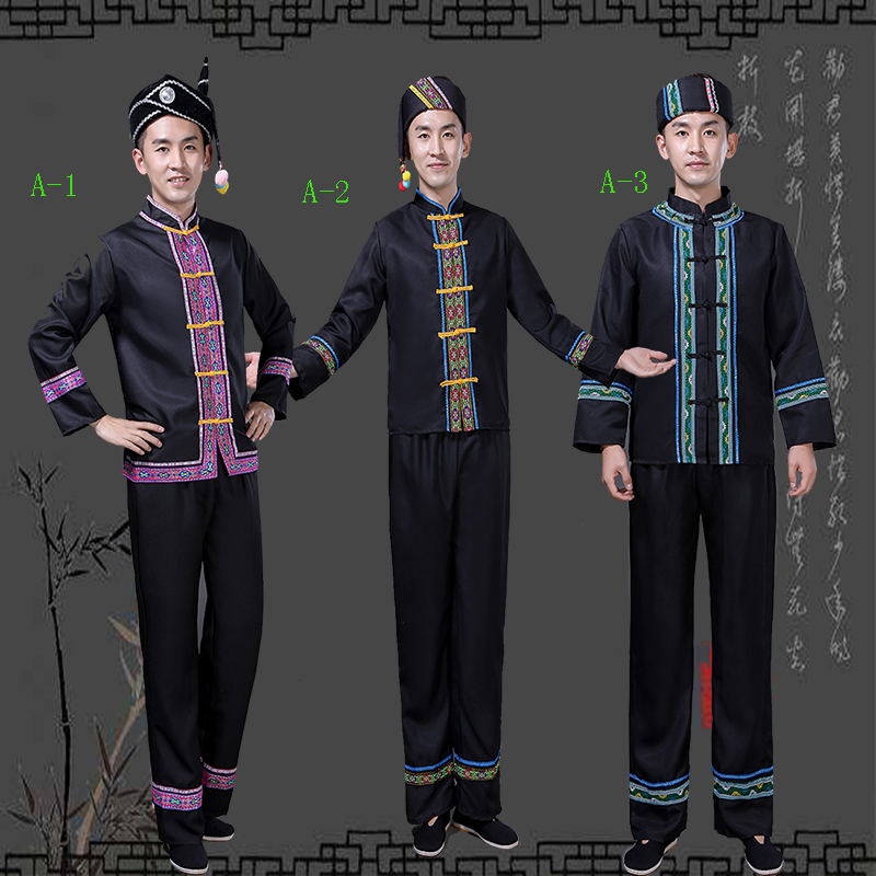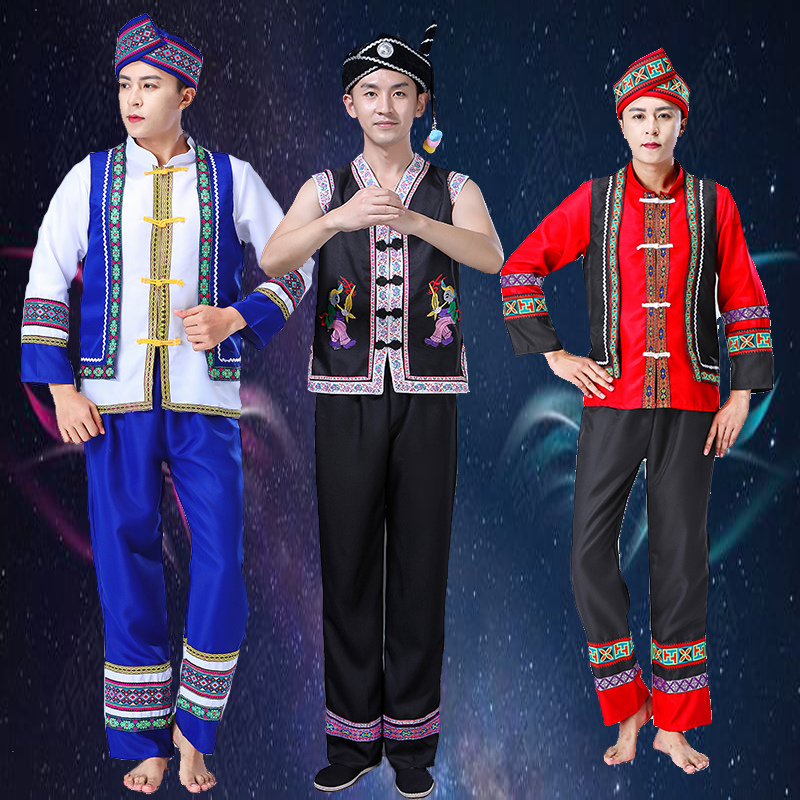 Zhuang clothing male and adult Yi ethnic dance suit Yunnan Nasi ethnic group performance clothes Tujia family white ethnic minorities
