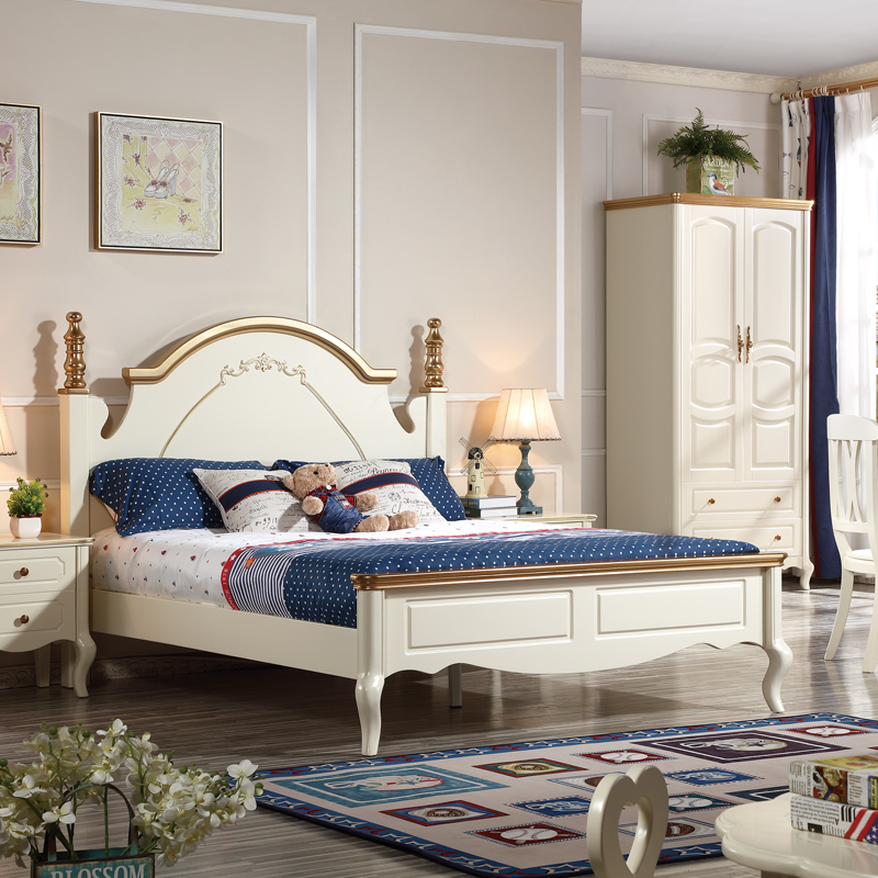 American light luxury solid wood 1 5 meters children's bed Boy bed Walnut wood 1 35m pure solid wood Italian single bed