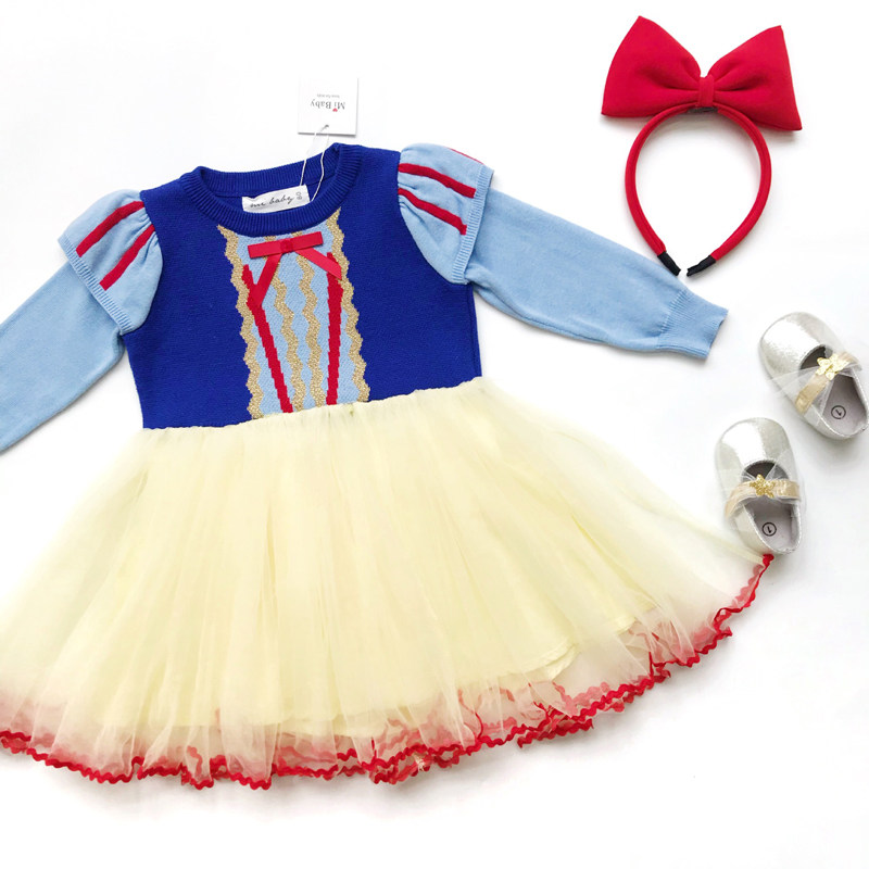 2019 autumn and winter girls Snow White skirt Halloween children's clothing foreign style knitted dress mesh skirt