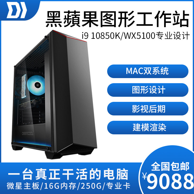 Black Apple host I9 10850K WX5100 RTX2070 3080 video clip design rendering computer