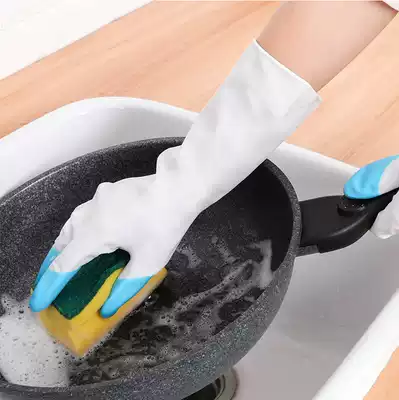 Cleaning housework thin waterproof glue leather gloves home kitchen laundry washing dishes gloves (a pair of loaded) one size